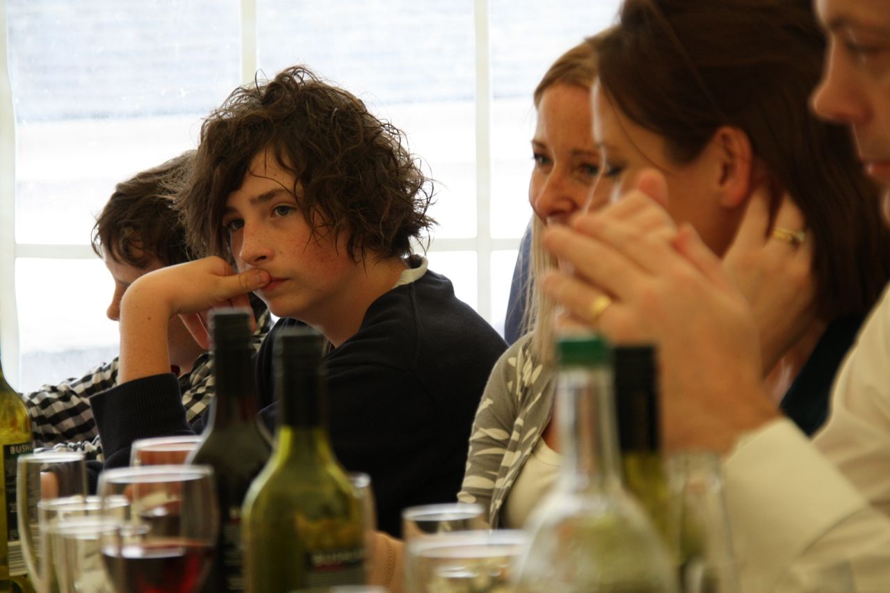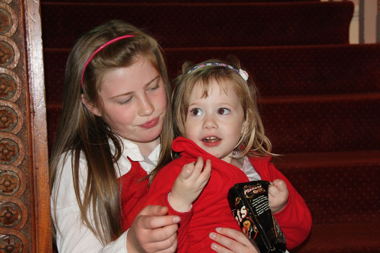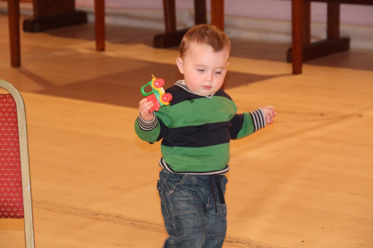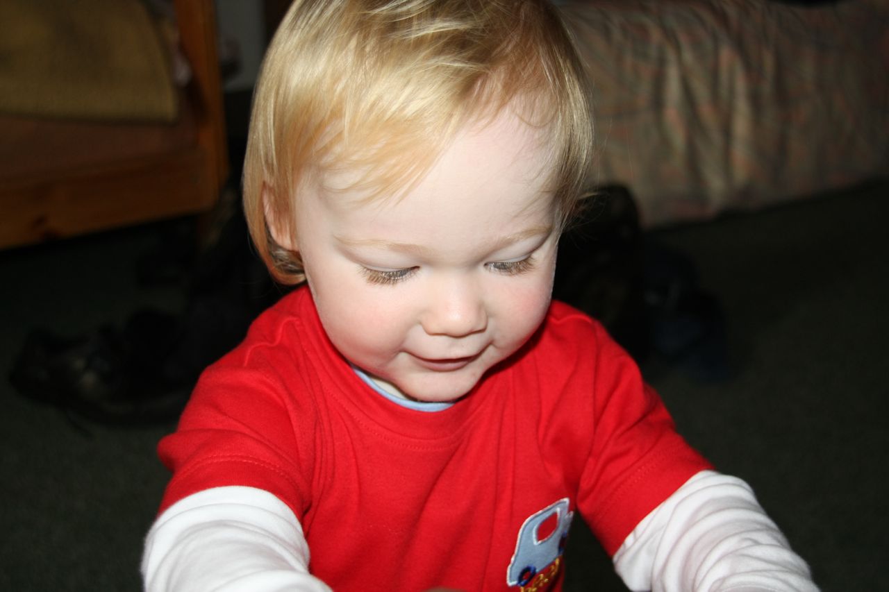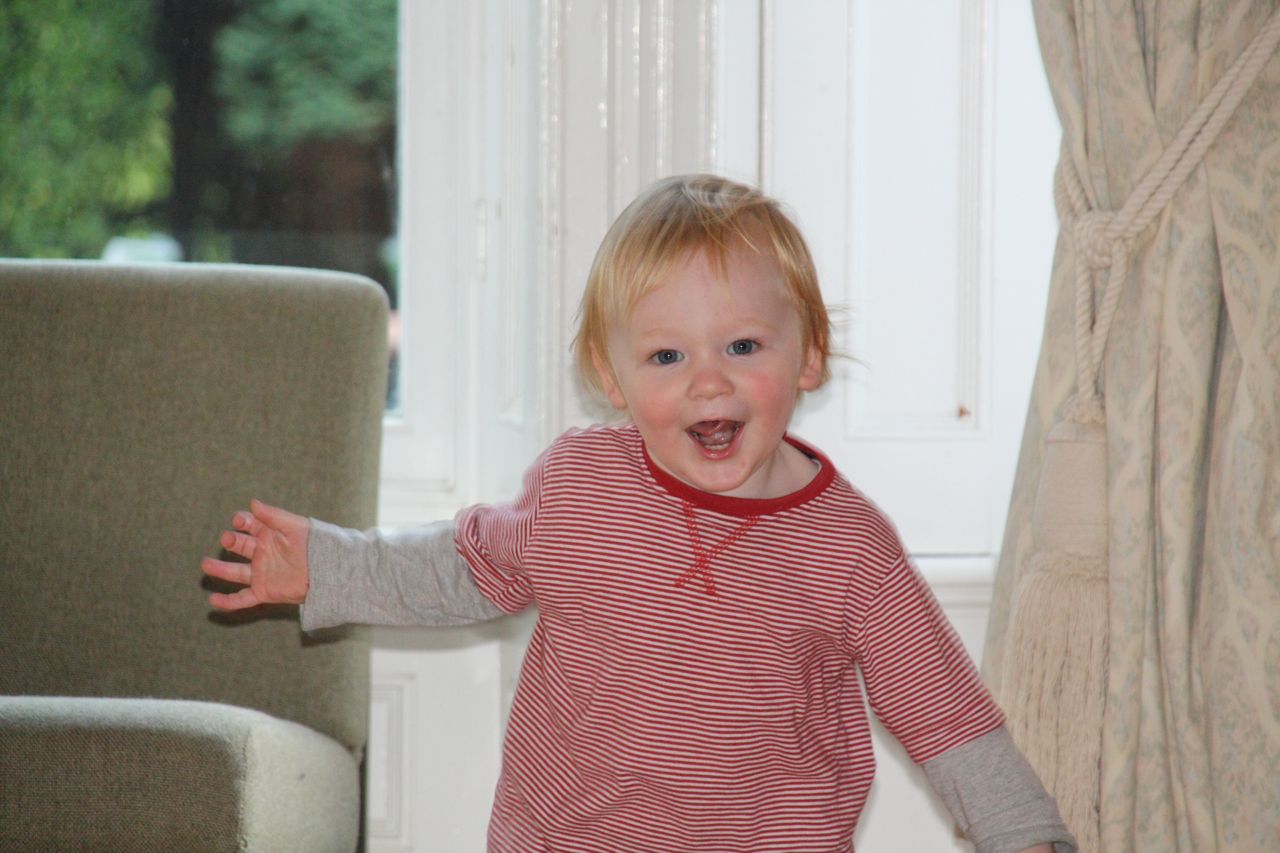 Poppy and Joe had a chocolate mousse each. Poppy is now quite used to using a spoon to eat and was able to land most of the mousse into her mouth, with little spillage. Joe on the other hand is still used to someone feeding him, and doesn’t have to experience yet of feeding himself. After a good start, Joe gave up with the spoon, and found it easier to put his whole hand into to pot, then try to eat it off his hand.